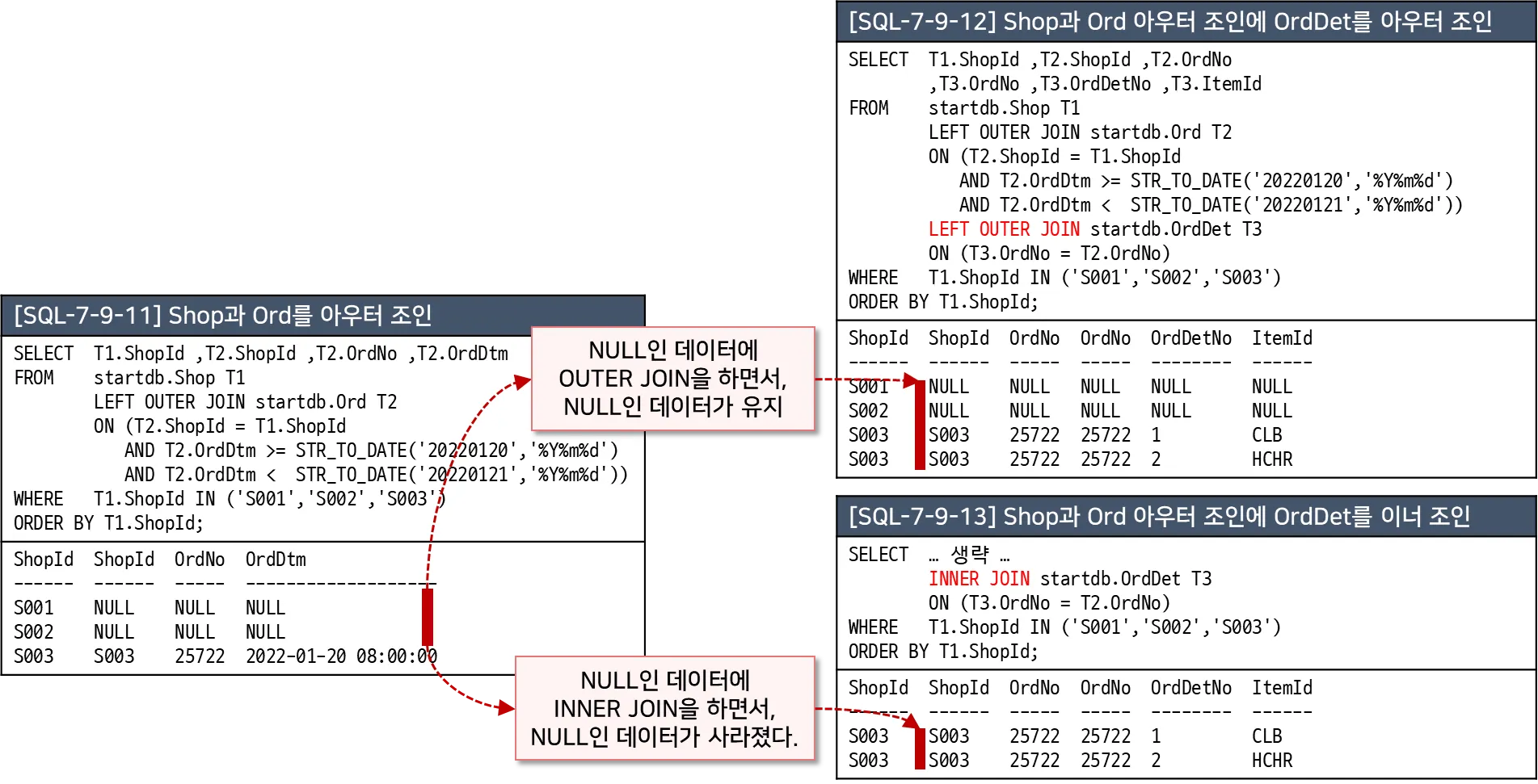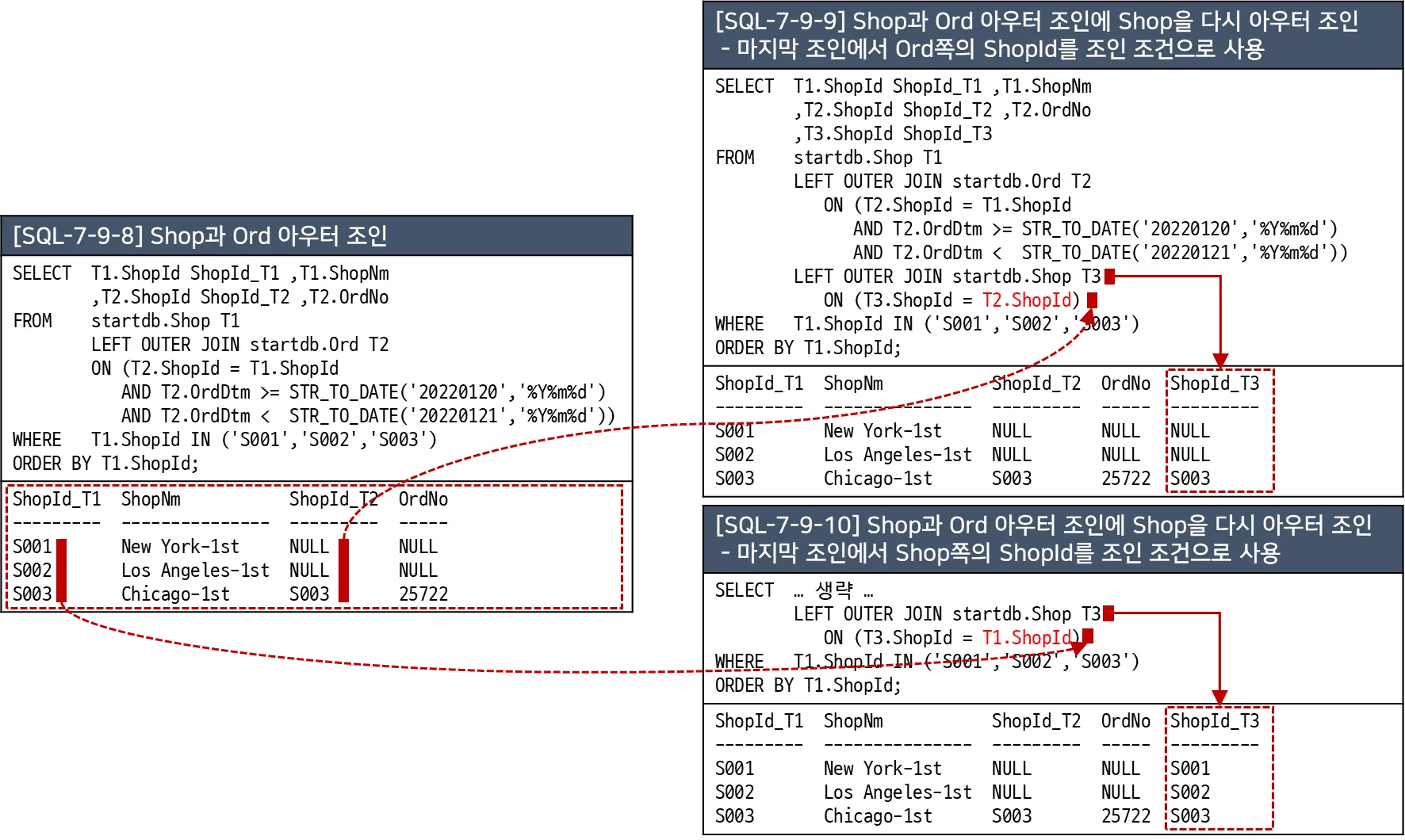 -- [SQL-7-9-12] Shop과 Ord 아우터 조인에 OrdDet를 아우터 조인