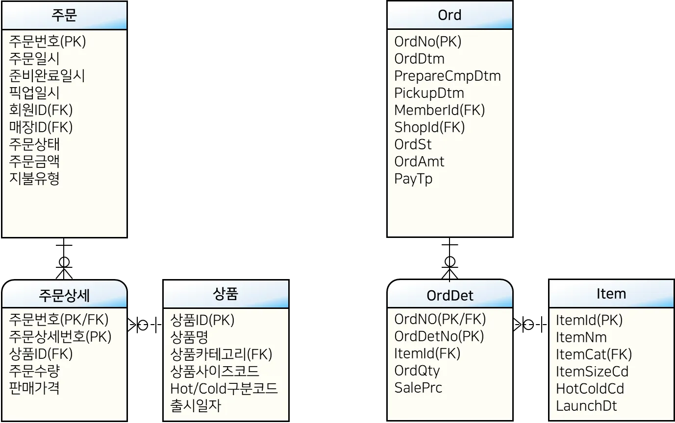 대상 테이블: 주문(Ord)과 주문상세(OrdDet)