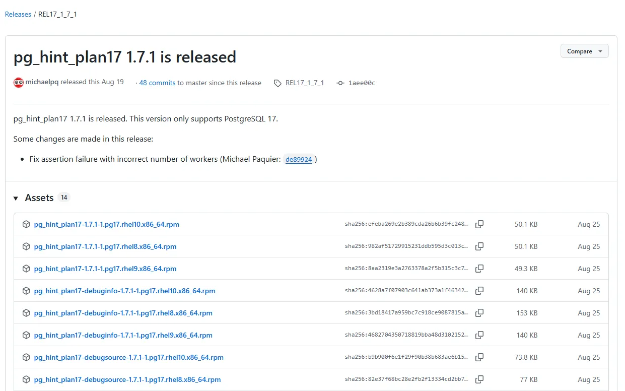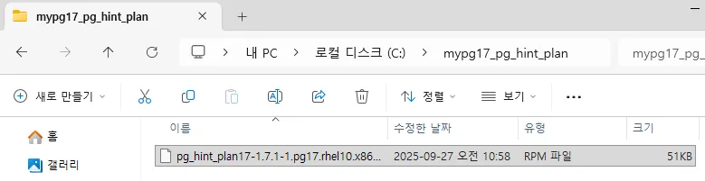 여기서는 pg_hint_plan17-1.7.1-1.pg17.rhel10.x86_64.rpm 파일을 다운로드합니다.