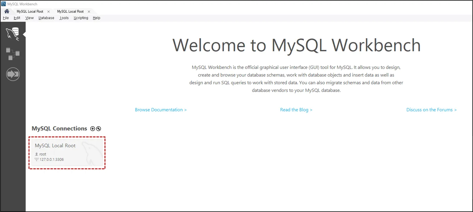 새로 추가된 컨넥션을 더블 클릭하면 MySQL에 해당 계정으로 접속할 수 있다.