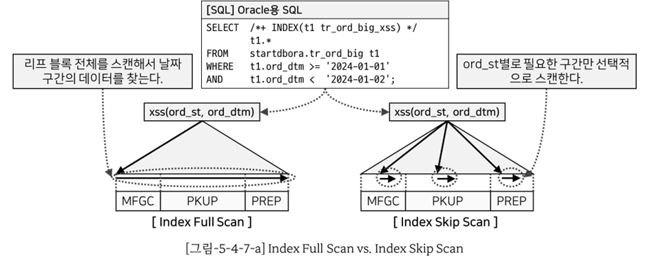 -- [SQL-5-4-7-b]: Oracle용 스크립트, [SQL-5-4-7-a]에 NO_INDEX_SS 힌트 추가