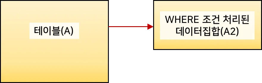 WHERE 절은 FROM 절의 테이블에서 조건에 맞는 데이터만 조회되도록 해준다. 아래 그림과 같이 조건을 처리한다고 생각할 수 있다.
