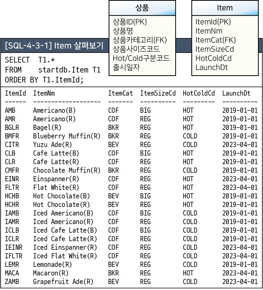 다음의 네 단계를 차례대로 수행하며 Item 테이블을 이해해 보자.