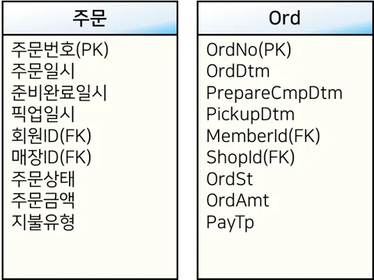 조회 컬럼: OrdNo, OrdDtm, PickupDtm, 픽업완료시간구분