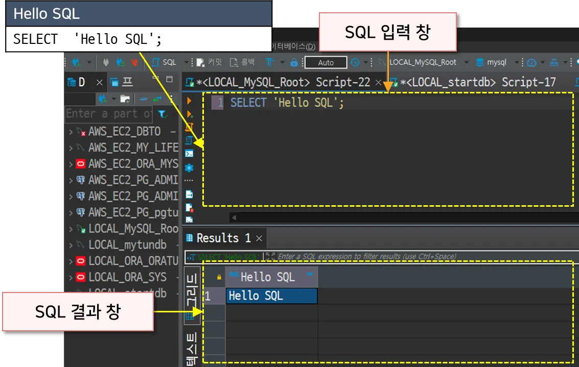 1번 구역에 커서가 있으면 첫 번째 SQL이 실행된다.