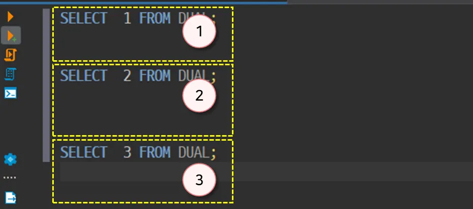 2번 구역에 커서가 있으면 두 번째 SQL이 실행된다.