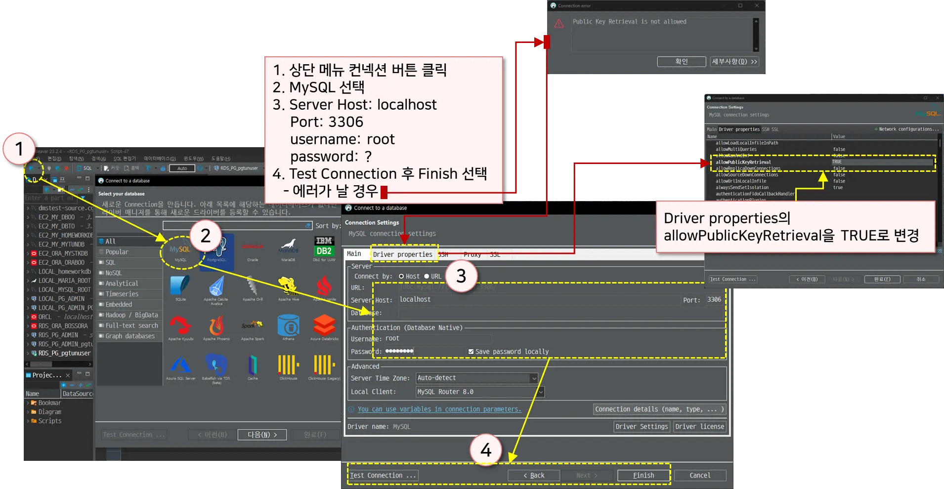 설치가 완료되면 DBeaver를 실행하고 아래 그림을 참고해 Connection을 추가하자.