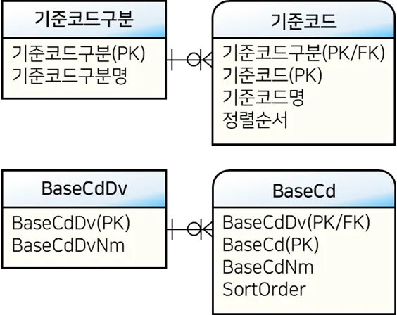BaseCd 테이블을 사용해 스칼라 서브쿼리로 처리합니다.