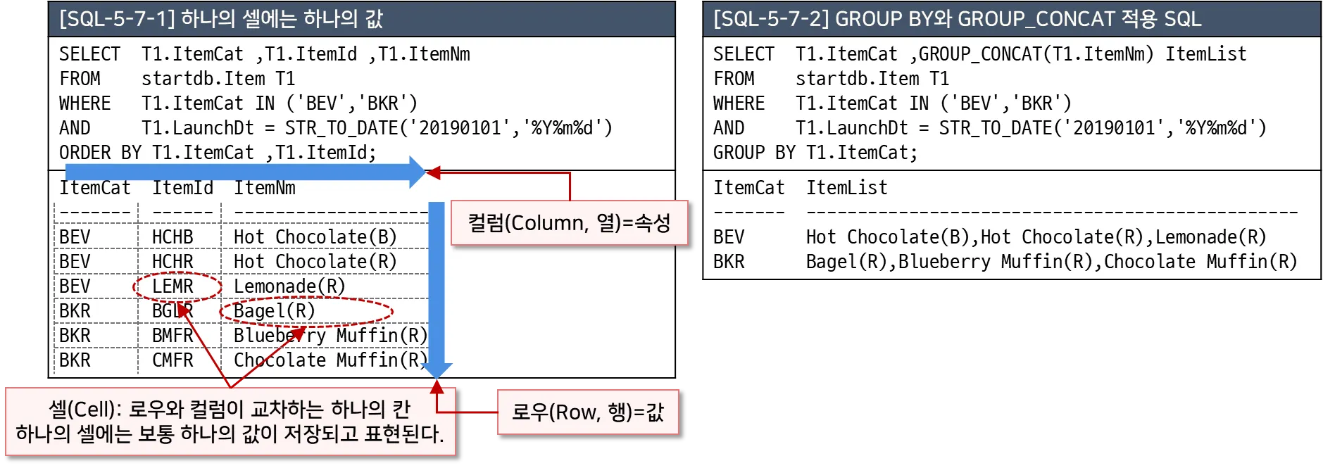 -- [SQL-5-7-1] 하나의 셀에는 하나의 값